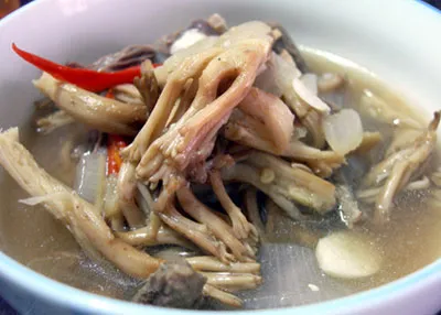 멸치 육수에 된장을 풀고 싸리버섯을 넣어서 끓이면 되는데, 감자나 호박을 같이 넣으면 더 맛있습니다.