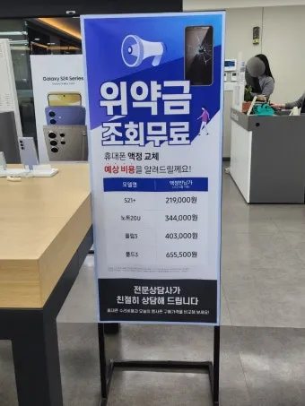 근데 여기서 꿀팁 하나. 공식 서비스센터가 아닌 삼성 공인 파트너 센터를 이용하면 5~10만원 정도 저렴하게 수리할 수 있어요. 부품은 똑같은 정품을 쓰는데 인건비가 조금 낮아서 그래요.
