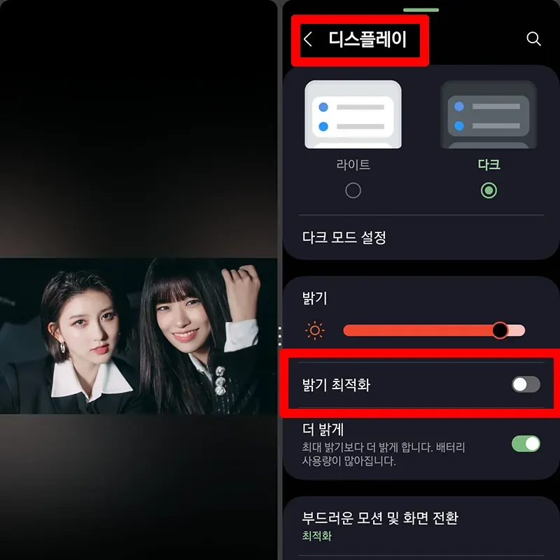 그런데 여기서 하나 알아둘 점이 있어요. 자동 밝기 기능을 완전히 끄면 야외에서 화면이 너무 어둡게 보일 수 있거든요.