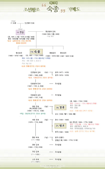 지금부터 조선 숙종 가계도, 숙종의 고양이 일화, 숙종의 생애, 업적에 대한 내용을 아래에서 확인해 보도록 하겠습니다.