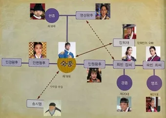첫 번째 왕비 인경왕후가 사망한 후, 1681년 민유중의 딸이 두 번째 왕비로 간택되는데 그 유명한 인현왕후죠. 서인 가문 출신이었던 인현왕후는 드라마에도 자주 등장하는 비운의 여인이에요.